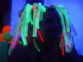 | Onelong w/silver/black/reflective | Two Long tied w/ blue/white | Blacklight version of blue/white |